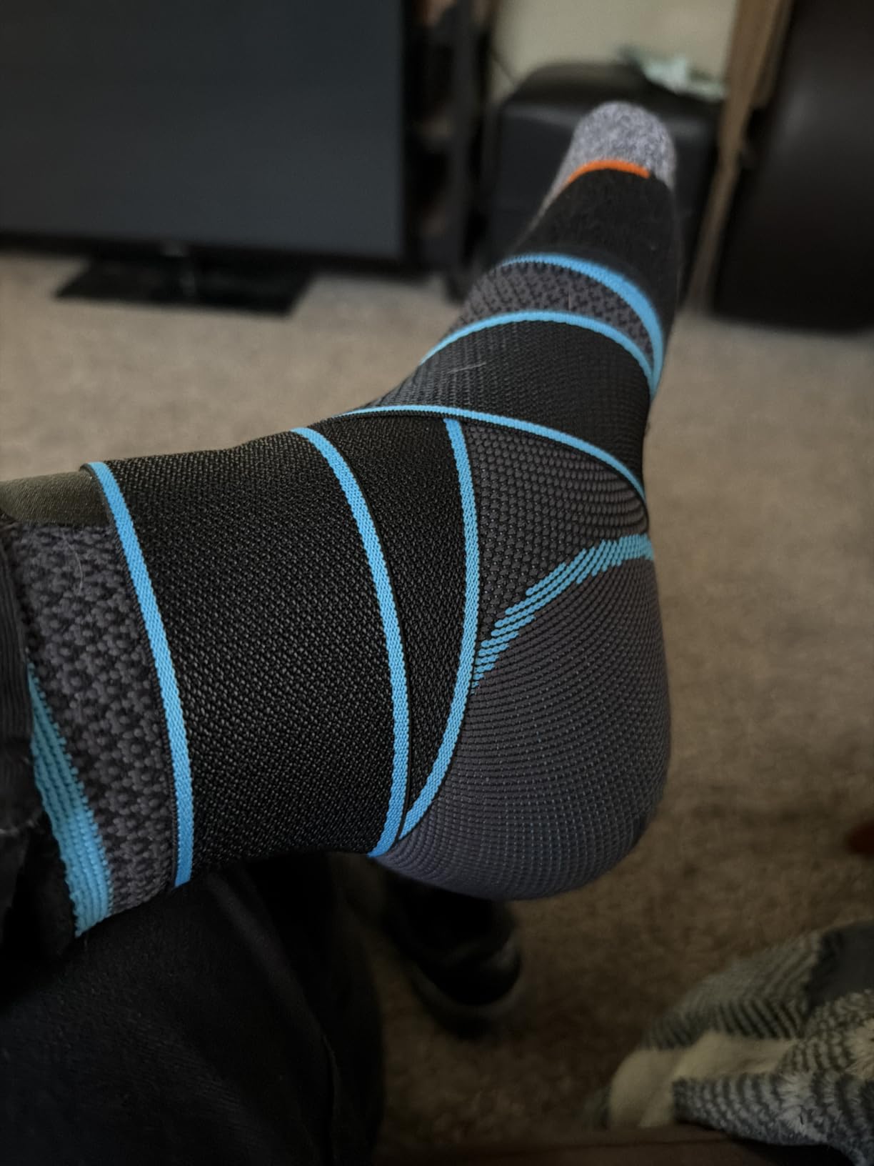 Unlike bulky boots or rigid braces, this one uses a thin, breathable knit and an adjustable wrap that stays flat, so it won’t bunch, pinch, or force you to change your footwear.