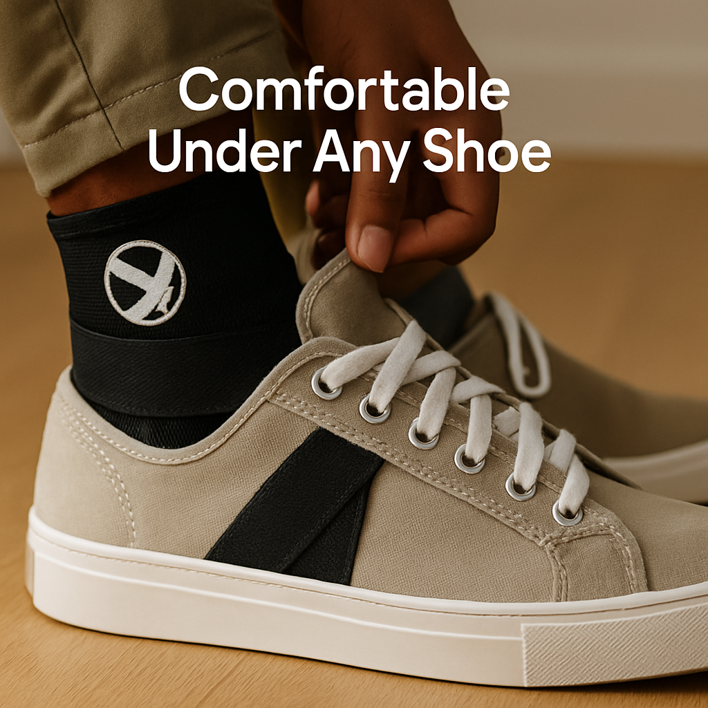 Finally, an ankle brace that doesn't force you to choose between support and comfort. Unlike bulky medical boots or rigid braces, our breathable design fits seamlessly under socks and shoes. The moisture-wicking fabric prevents sweat buildup, while adjustable straps let you customize compression without cutting off circulation.